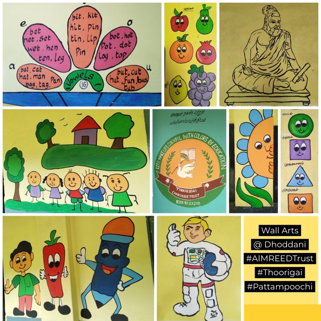 We have partnered with Thoorigai and Pattampoochigal Arasu Palligalai Kappom Team for Wall Art painting works at Panchayat Union Primary School, Dhoddanni village, Kagguchi Panchayat, Ooty Taluk, The Nilgiris.